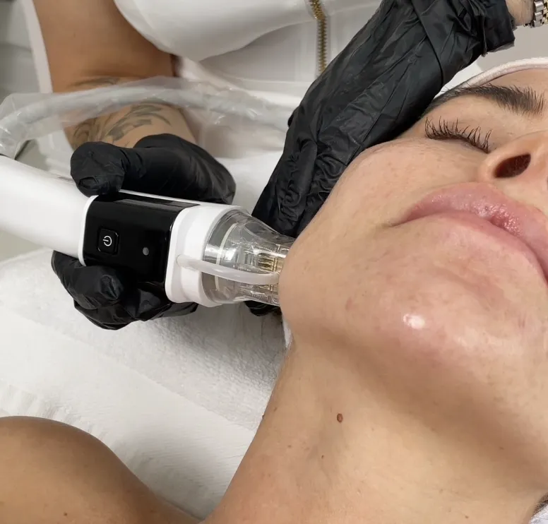Radiofrequency Microneedling is an aesthetic treatment that uses super fine gold-plated microneedles to target and treat specific areas of the face and body. It is used to soften the appearance of wrinkles, acne scars, stretch marks and other signs of ageing.